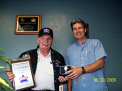Gene Hardman started 20 years ago in 1989, this relationship has past the test of time through the thick and the thin, careers have been built around this relationship, including his and mine, and Apex is truly a more valuable company because of it. A friend once told me that the genuine test of the value of an employee is, “Would you take 10 more just like him?” You bet I would!!! I am honored to present Apex’s deepest appreciation for 20 years of dedicated service to Gene Hardman.